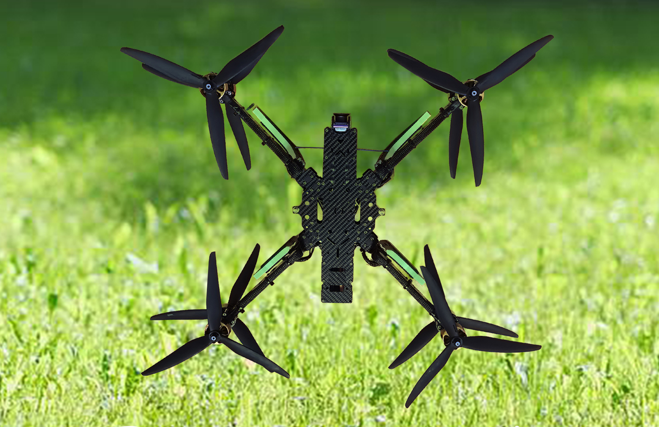 一款共轴双桨类型的穿越机,并且兼容无人机,使用8个3115无刷电机,在推荐配置的情况下能够达到60%油门13.6KG的推力。